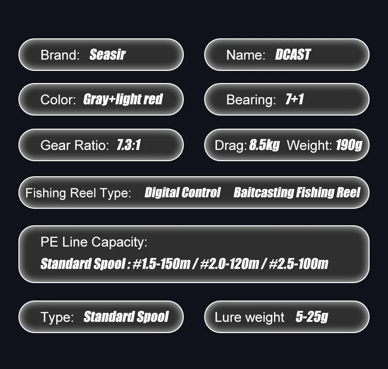 SEASIR Baitcasting Fishing Reel DCAST DC shows true performance on every water type. The DCAST DC digital control braking refines long cast accuracy, while the 7.3 1 gear ratio 7+1BB system increases retrieve speed. Additionally, the 8.5KG max drag power handles sudden runs. Carbon washers and brass gears guarantee smooth casting and durable operation. With a 190g lightweight body and standard spool capacity for PE lines, this digital control baitcasting fishing reel suits modern anglers. Check where to buy, compare price options, and order online in the USA, Canada, or Europe during акция or discount campaigns.